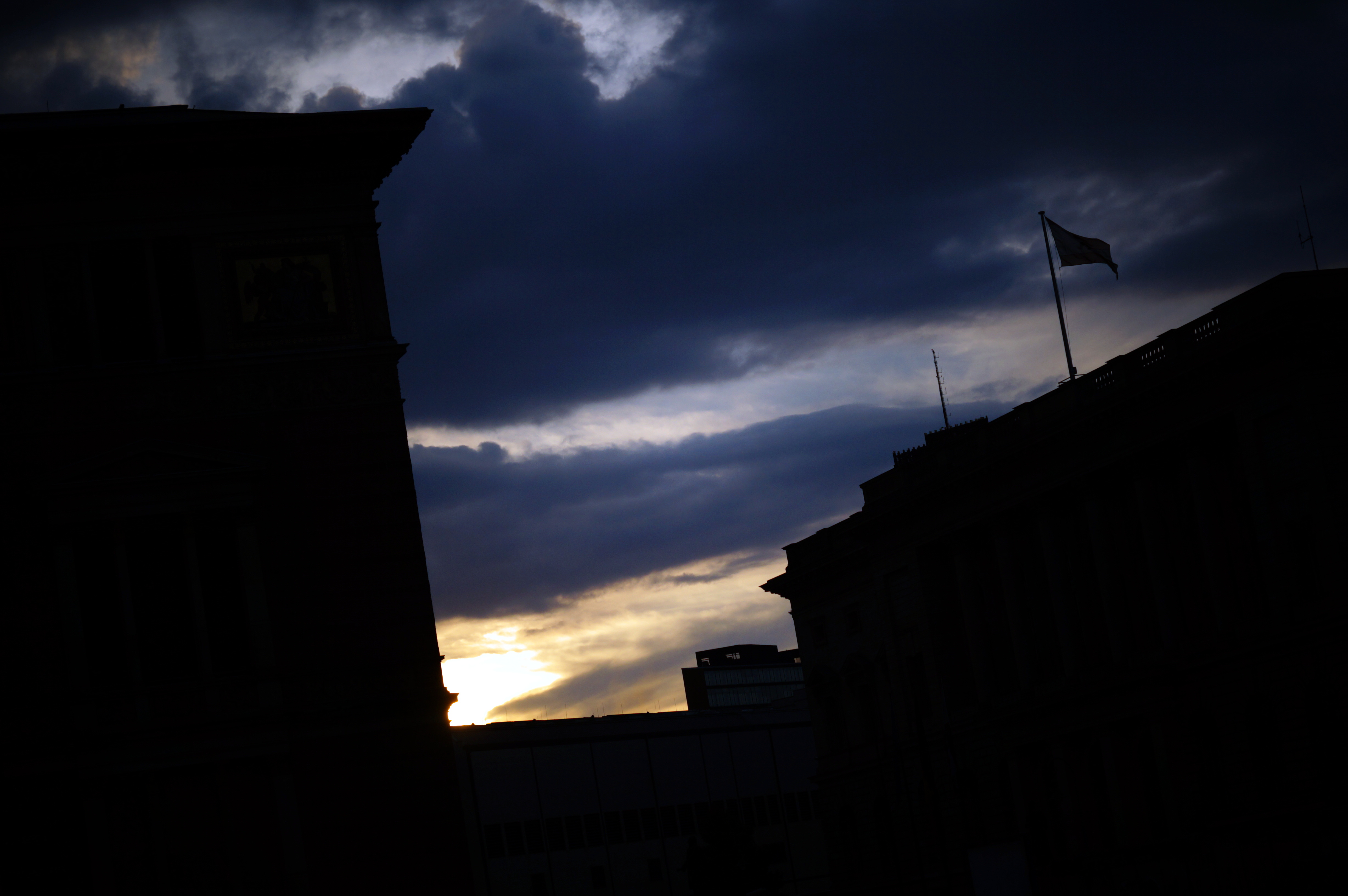 The Sun Setting behind Buildings