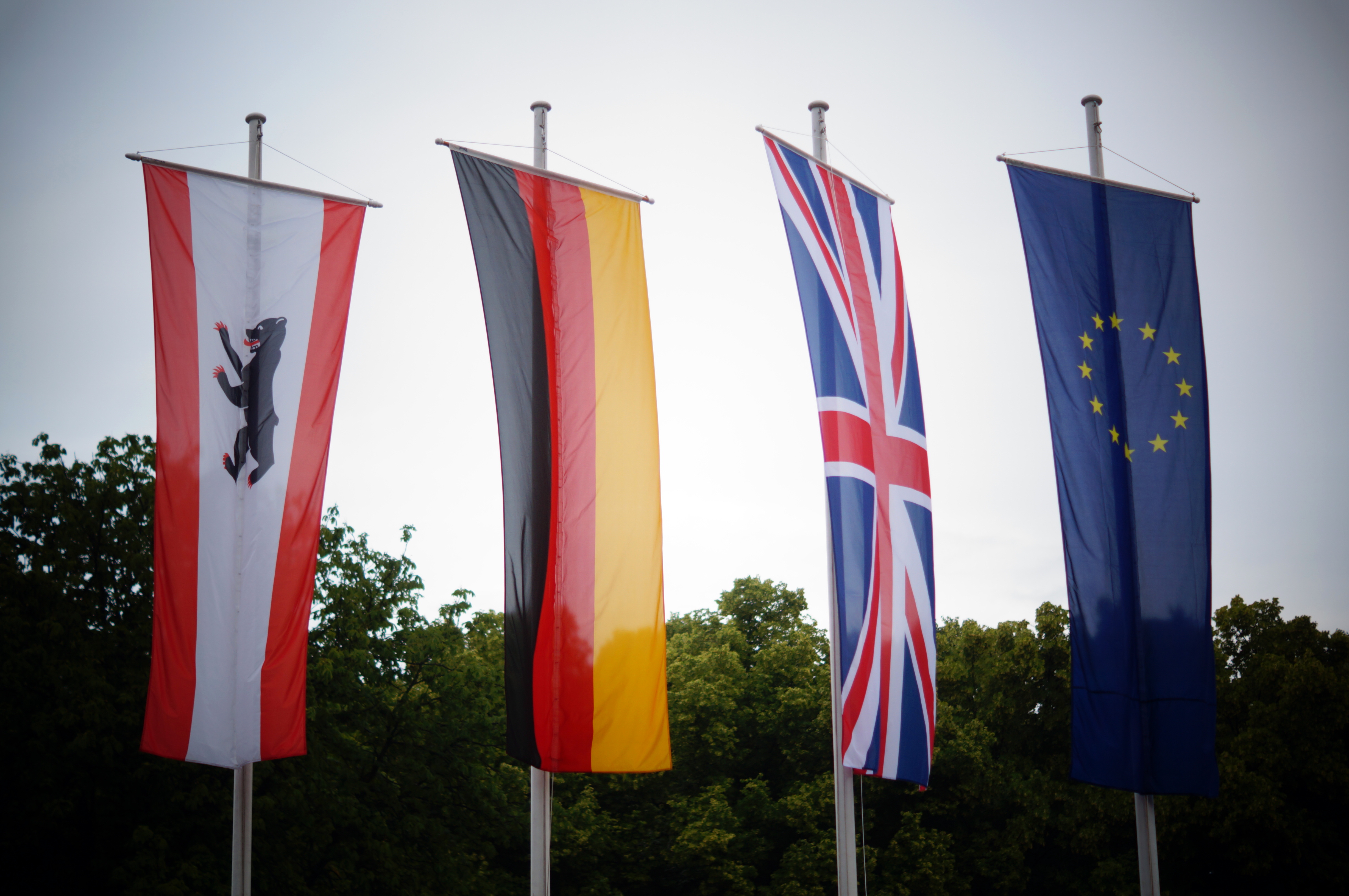 Flags behind the Brandenburg Gate
